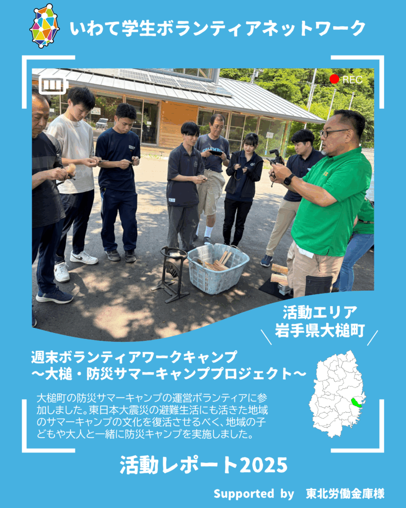 今回は安渡町内会様から学生ボランティア募集のご相談をいただき、当会ではボランティアコーディネート、送迎サポートを行い、大槌町の防災サマーキャンプの復活のお手伝いを行いました!
