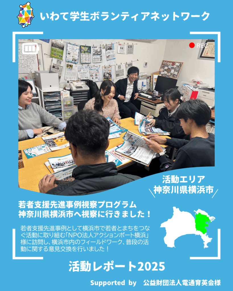 アクションポート横浜様は当会が取り組んでいる「いわてワカモノ図鑑」を参考にしていただき、「横浜アクションマップ」を作成されています。また、アクションマップに掲載されている学生団体の皆さんの活動発表・交流の場である「横浜アクションアワード」なども開催されており、見習うべき点がたくさんありました。