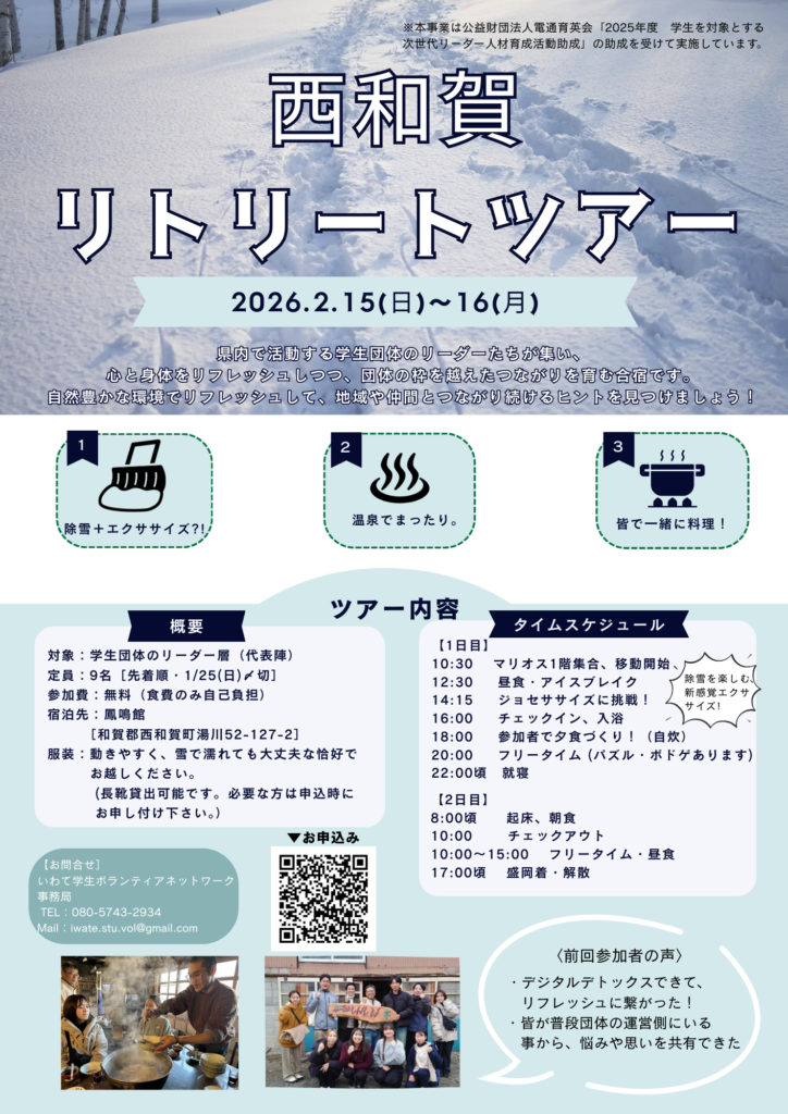 【学生リーダー向け】「西和賀リトリートツアー」参加者募集