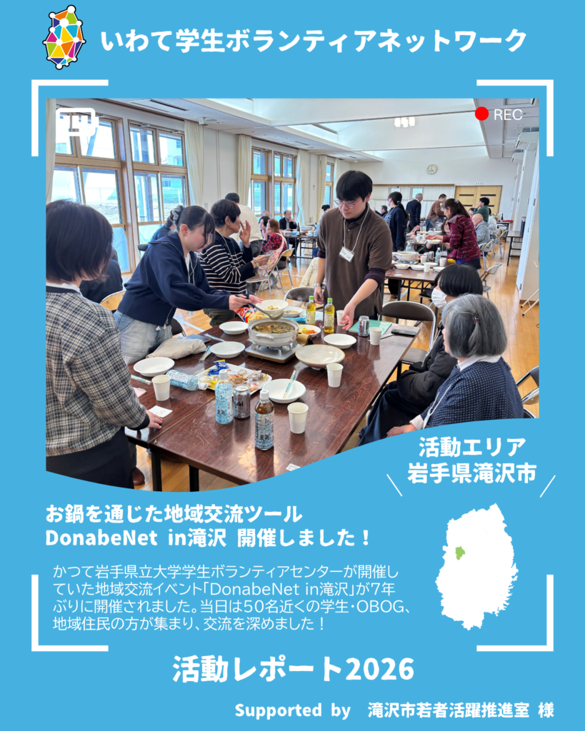 いわて学生ボランティアネットワークでは「岩手県立大学学生ボランティアセンター」との共催で、3月1日(日)に「DonabeNet 滝沢~地域と学生をつなぐ交流ツール~」を開催しました!